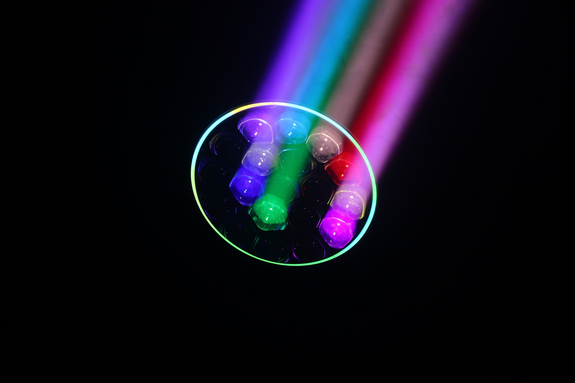 Фронтальное светодиодное кольцо с встроенными макроэффектами будет дополнительным визуальным эффектом при создании светового шоу.