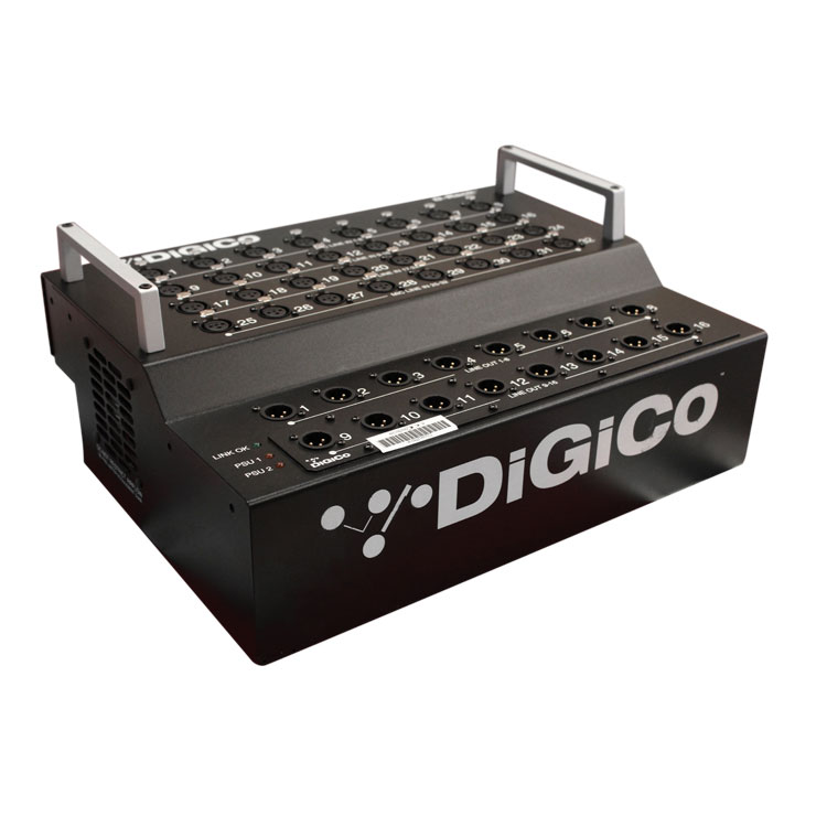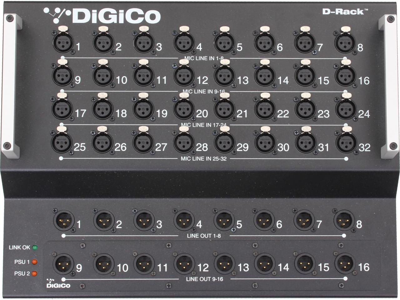 Интерфейсный модуль D-Rack: 32 мик/лин входа, 8 линейных симм. выходов, 4 AES/EBU выхода, 2 встроенных блока питания, USB, Ethernet
