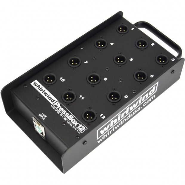 Пассивный 12-канальный сплиттер, 1 линейный вход XLR "мама", 12 микрофонных выходов XLR "папа", межканальная изоляцию 65/107 дБ на трансформаторах, встроенный Ground lift, Произведен в США. Пассивные линейные распределители позволяют из одного линейного входа получить несколько микрофонных выходов. Каждый выход имеет Whirlwind TRSP-2F трансформатор обеспечивающий отличную межканальную изоляцию и встроенный Ground lift устраняющий структурный шум.