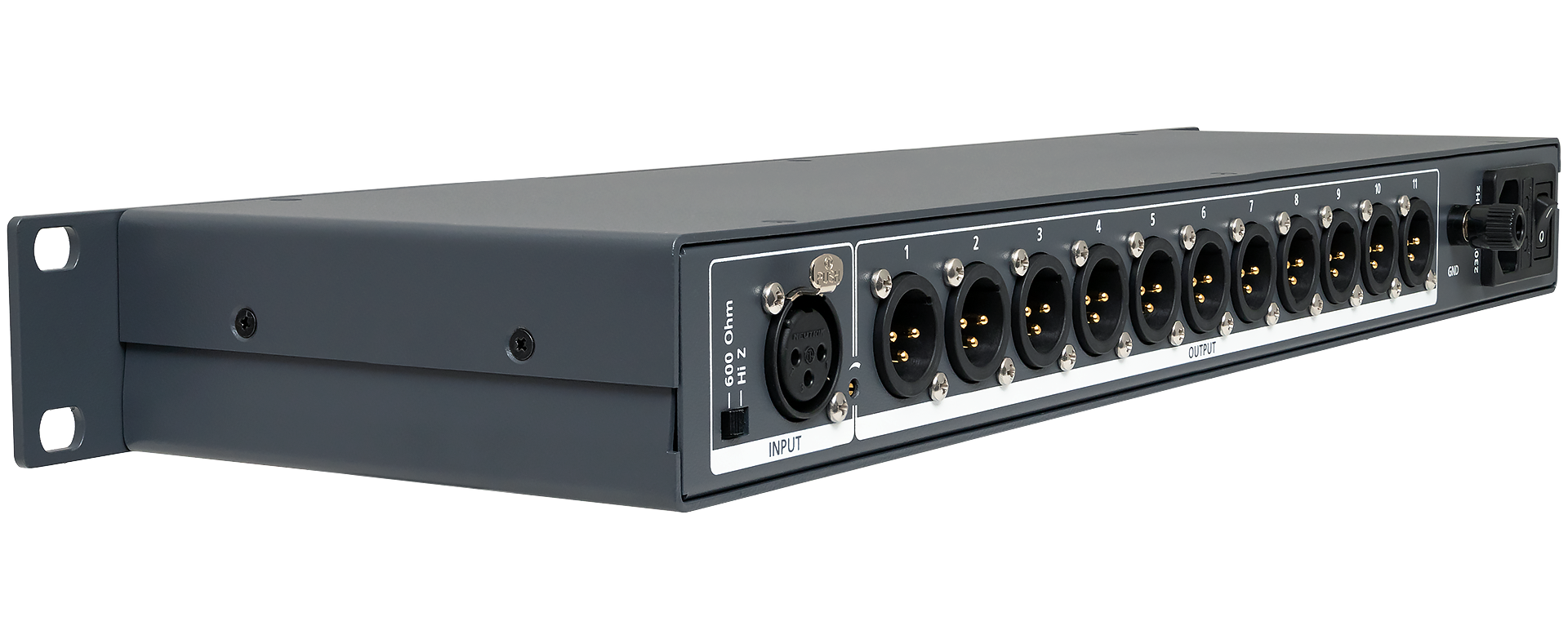 Усилитель-распределитель DS-110AS предназначен для передачи симметричного аналогового звукового сигнала от одного источника к одиннадцати приемникам с минимальными искажениями, без нарушения необходимого согласования входного сопротивления и нагрузочной способности.