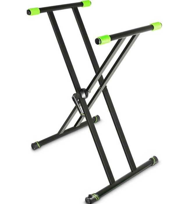 Одноуровневая крестообразная стойка для клавишных инструментов. Сделана из стали. Максимальная нагрузка 65 кг. Максимальная рабочая высота 900 мм, максимальная глубина 400 мм. Стойка оборудована специальной патентованной насадкой Varifoot для регулирования устойчивости в случае неровного пола. Вес 4,45 кг. Комплектуется вторым ярусом GKSX2T для размещения второго клавишного инструмента.