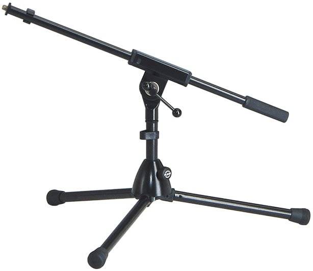 Низкая микрофонная стойка-журавль для бас-бочки, металлические узлы, высота 290 мм, длина журавля от 870-550 мм, цвет черный